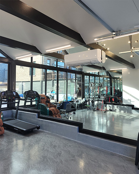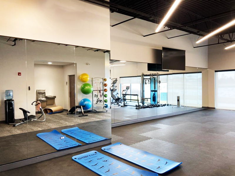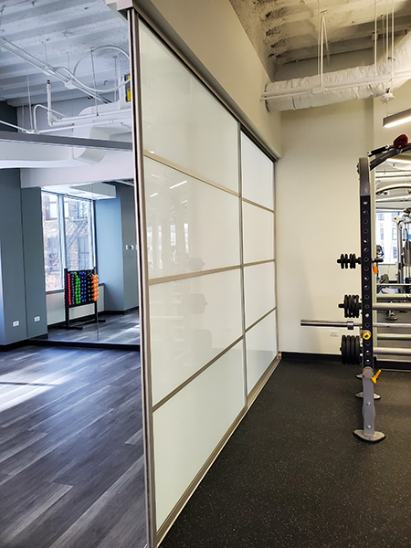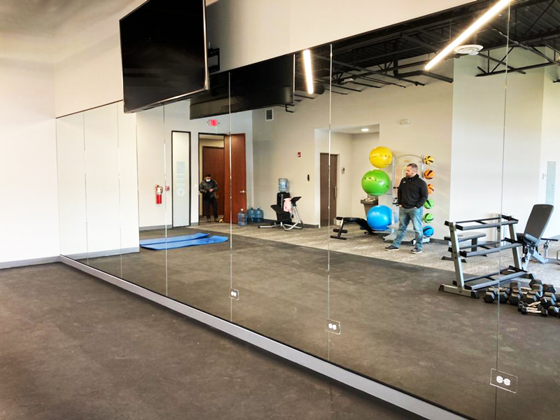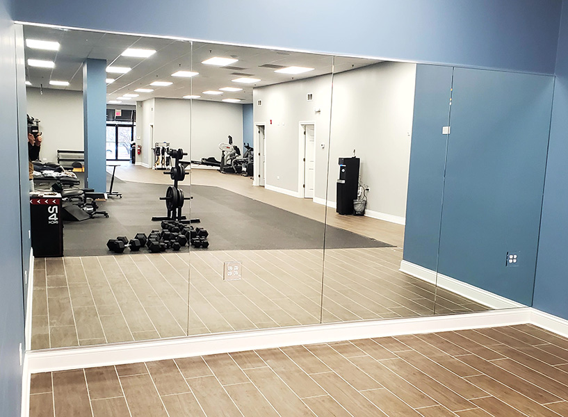 Glass & Mirrors have a big role in any Fitness Center! Custom Mirrors in an exercise area allow members to practice and perfect their workout form, while noticing their progress over time. When it’s time to cool down, mirrors in a Locker Room or Spa setting allow any member to freshen up and check their appearance. Plus Frameless Glass Shower Doors in a Shower Area can give off a clean, luxurious, and modern feel. Sliding Glass Room Dividers are the perfect minimal-construction, affordable, and customizable way to separate different work out spaces or provide a private area for personal training.