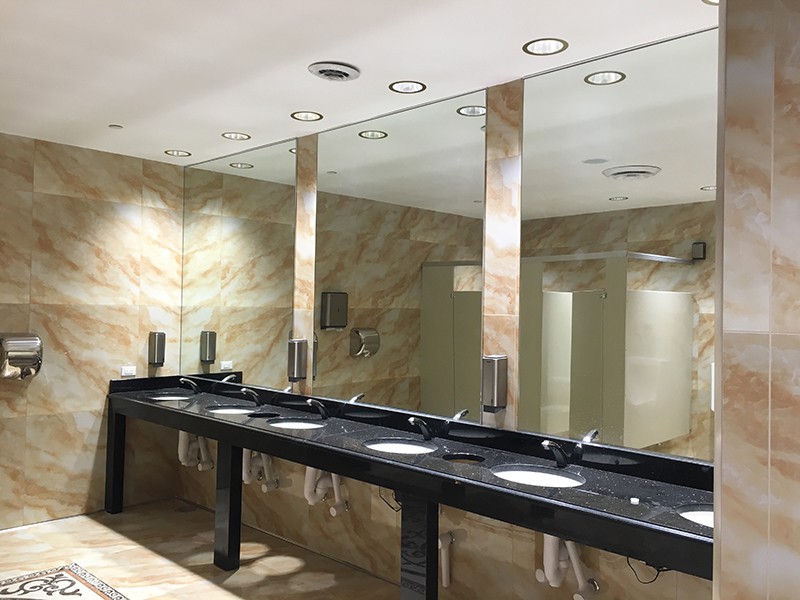 Open up and brighten your restaurant’s dining area with a beautiful display of custom mirrors! They Brighten, Expand, and Beautify to create that welcoming atmosphere guests know and love. Mirrors also are highly customizable. Our fantastic Art Glass Division is able to etch or paint any piece of glass with a logo, motto, or any other decoration. Because our Artistic Glass is done in-house, we’re able to cover your project from start to finish, no matter how large or small!