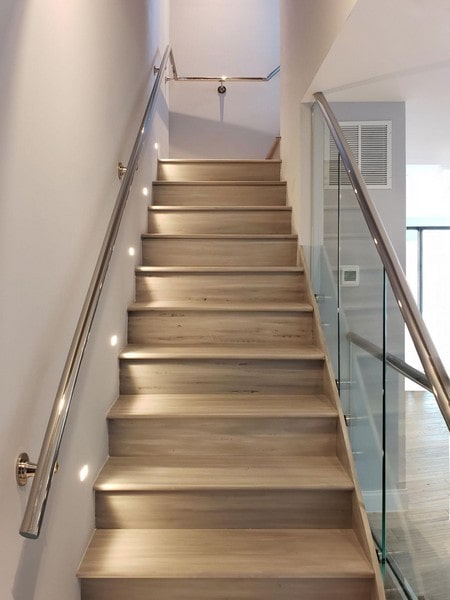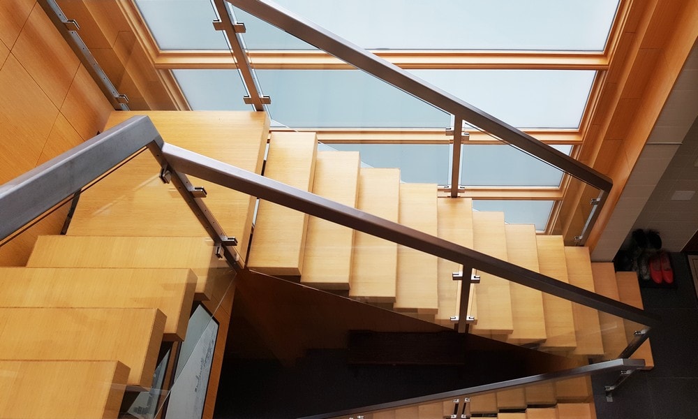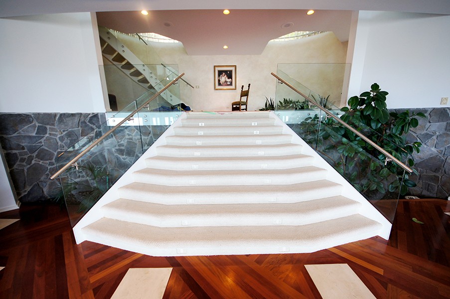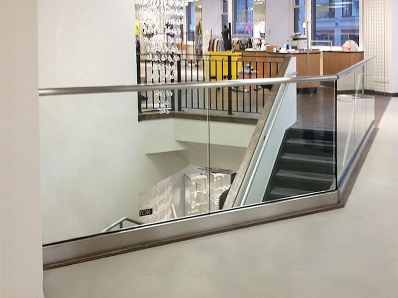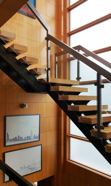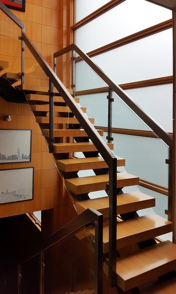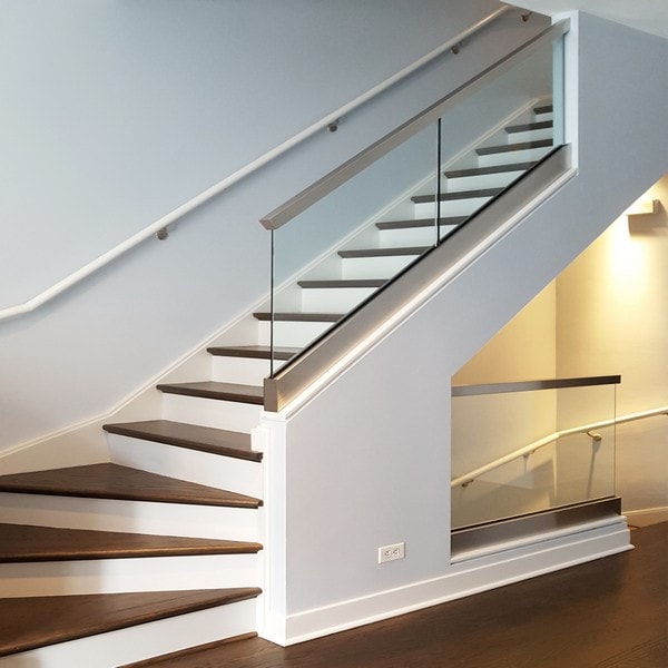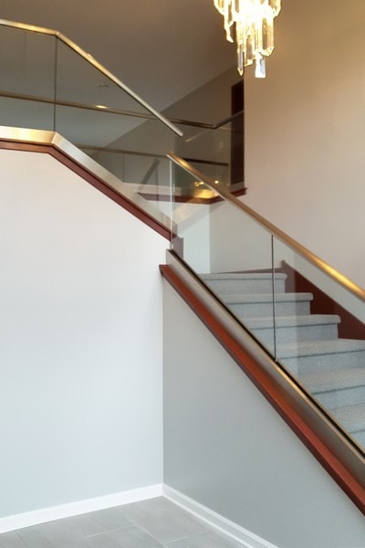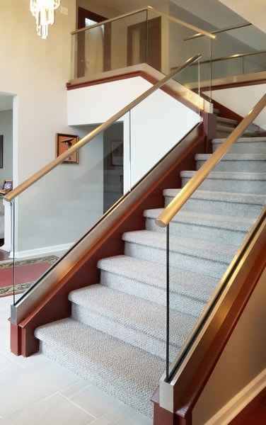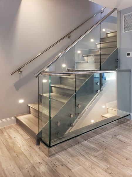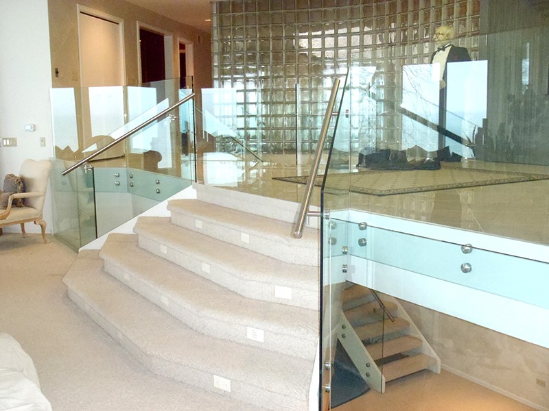 Create an open, spacious look with sleek and clean lined Contemporary Glass Railing systems from Creative Architectural Glass. Some designs call for straight glass stair railing used up stairways, or as divider partitions between two rooms. Other designs require curved or bent glass, which is achieved by carefully measuring the existing stairs and creating millwork or fabricating metal to structurally secure the addition of an elegant glass railing. Whenever possible, it is best to have the millwork designed, built and installed to achieve the integrity required for our glass railing. In some cases on retrofit installations, the old rail is removed and replaced with glass railing using specialized techniques to provide the structural requirements.