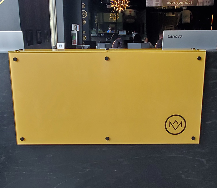 Make your logo shine with custom glass signs. It is a great way to decorate your business in style, while enforcing your individual company brand. Designs etched into glass signs are easy to care for and longer-lasting than other materials such as vinyl. No need to worry about bubbles, wrinkles, or letters falling off. Your glass signs can be unique one-of-a-kind designs made to your specifications.