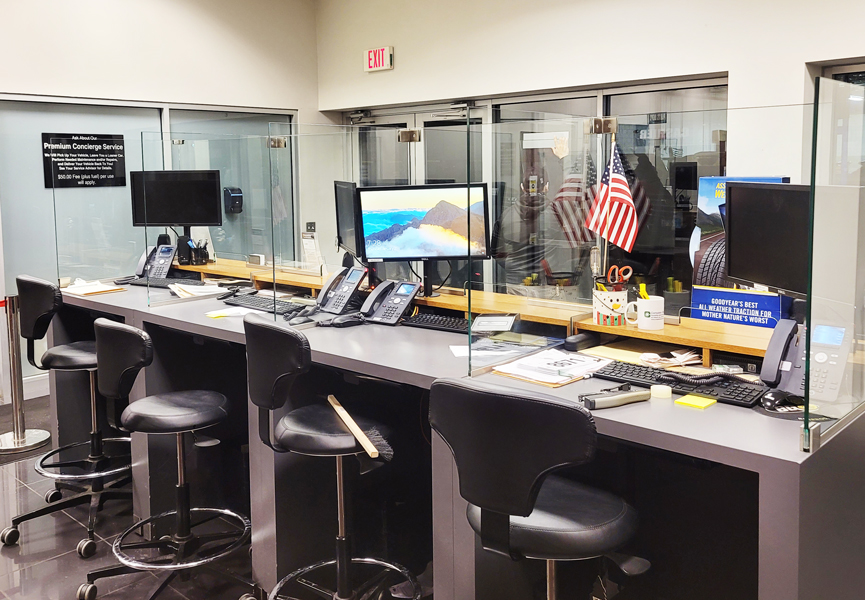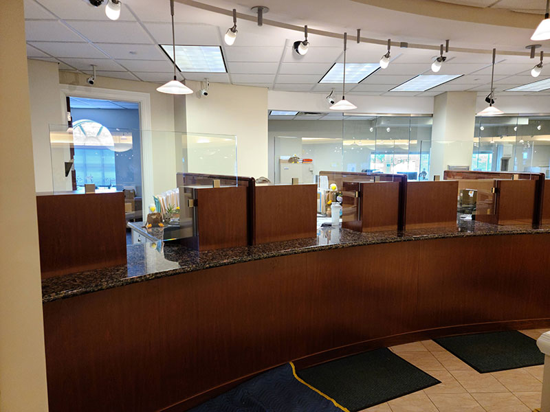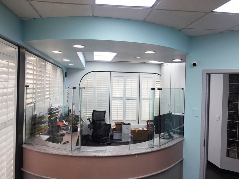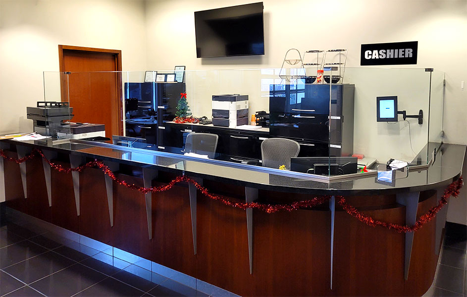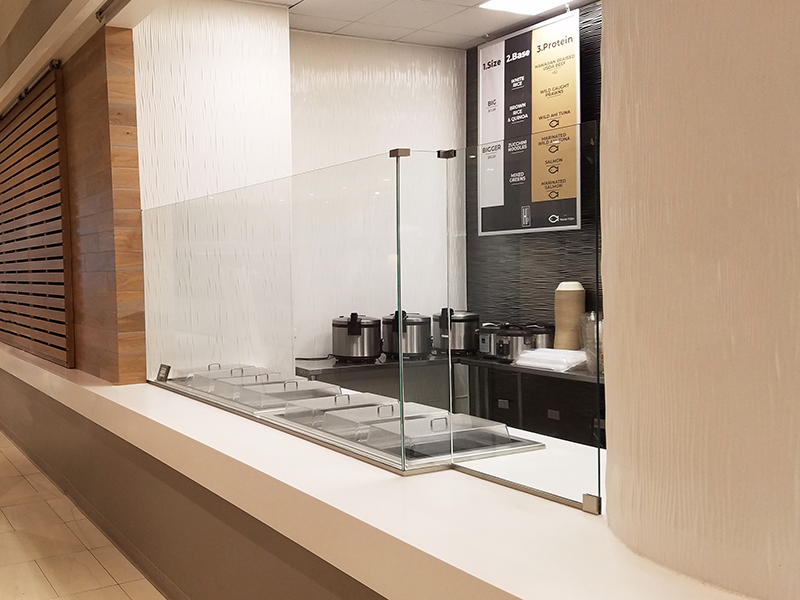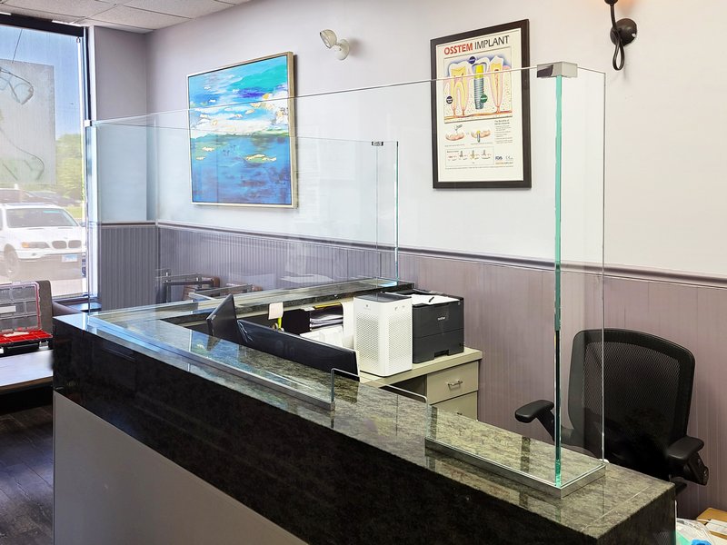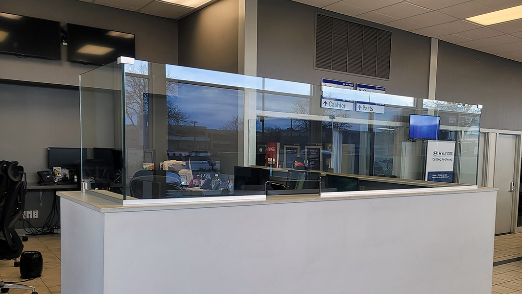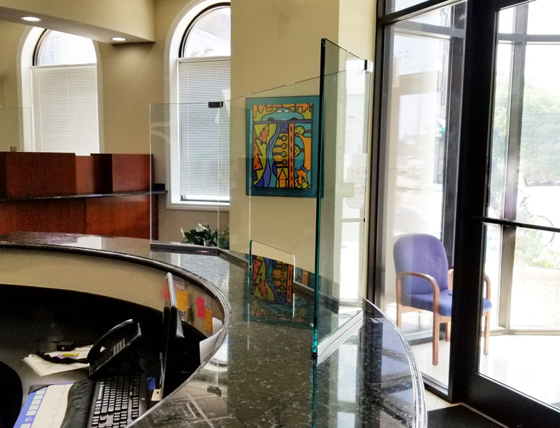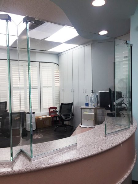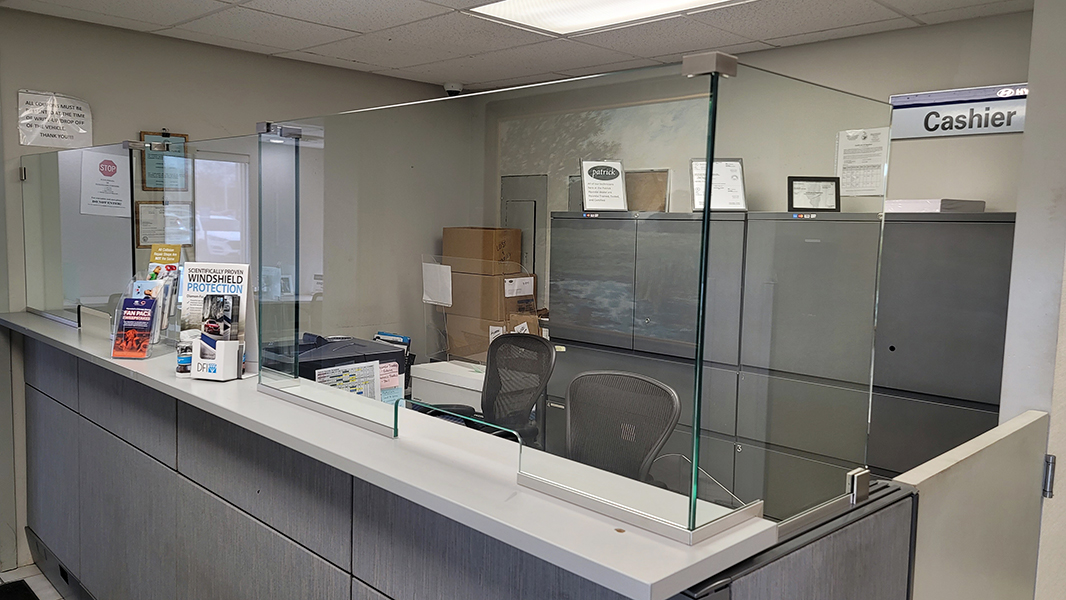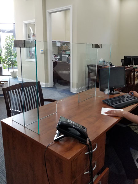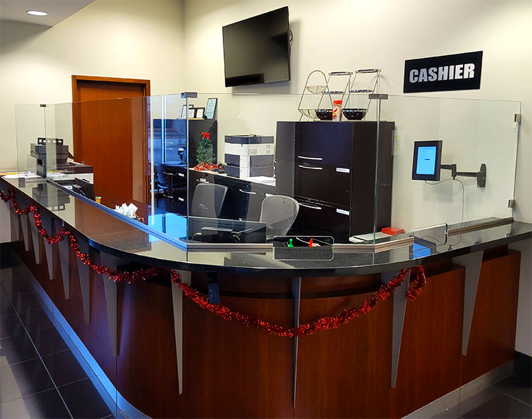 Krystal Hygienic Glass Dividers and Sneeze Guards offer protective barrier solutions in public places such as restaurants, banks, medical offices, salons, hotels, and other commercial businesses. Keep your employees and customers safe and healthy for years to come! Help shield employees from Coronavirus (Covid-19) to the common cold and influenza. Krystal Hygienic Glass Dividers and Sneeze Guards are minimally visible frameless glass panels installed on working desks, reception desks, and countertops.