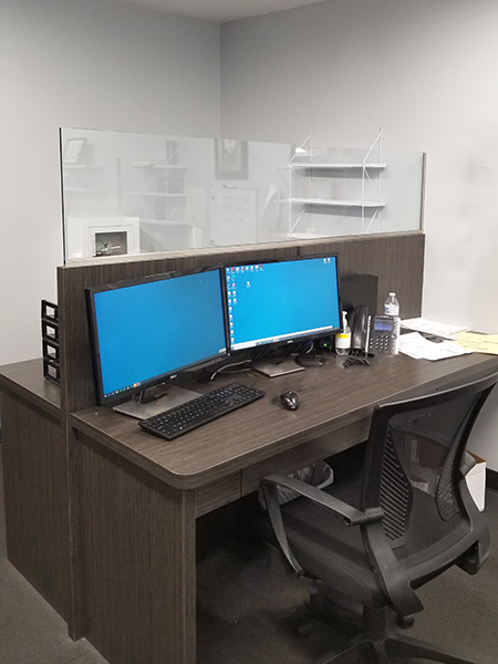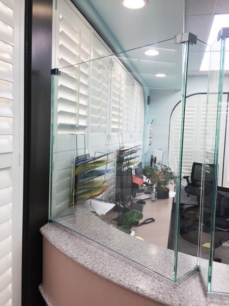 Minimally visible Frameless Glass installed on working desks and countertops.