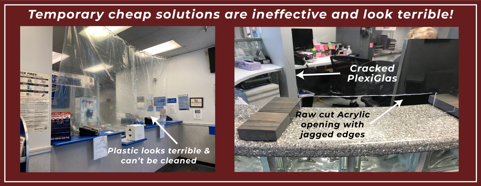 Your customer’s first impression is important to your business. Krystal Hygienic Glass barriers are easy to clean and are more resistant to scratches than acrylic and plexiglass, which often look distorted and cloudy. You can be assured that your Krystal Hygienic Glass Divider or Sneeze Guard will look beautiful for years to come!