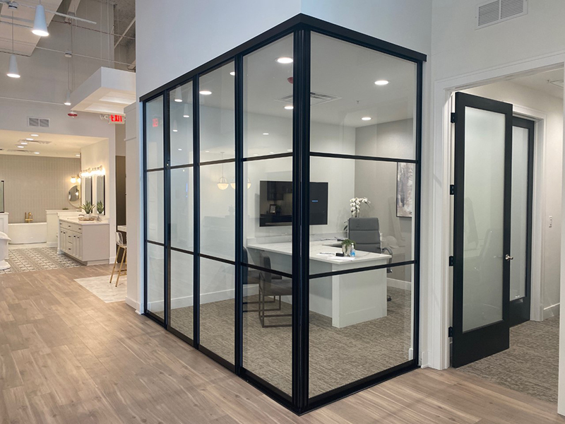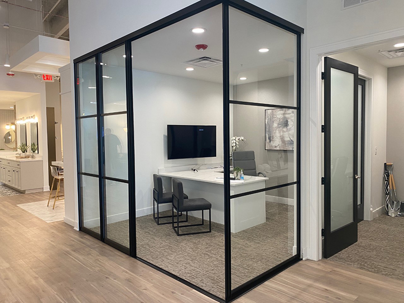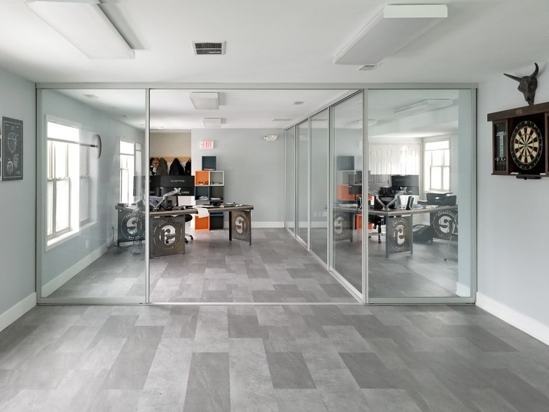 The Raumplus sliding door systems offer German-engineered high quality design and superior craftsmanship. Raumplus sliding doors allow flexibility of space utilization with innovative concealed hardware, and streamlined aesthetic beauty. This modern design, made popular in Europe and all over the world, is designed to look the exactly same from both sides, making it perfect for a room divider. They are purchased in bulk by Creative Architectural Glass and manufactured locally with unlimited glass options, dramatically decreasing lead times and pricing over import from Germany. We provide professional installation and take full responsibility for all measuring, fabrication, and installation without any third party subcontractors so you never get caught in the middle.
